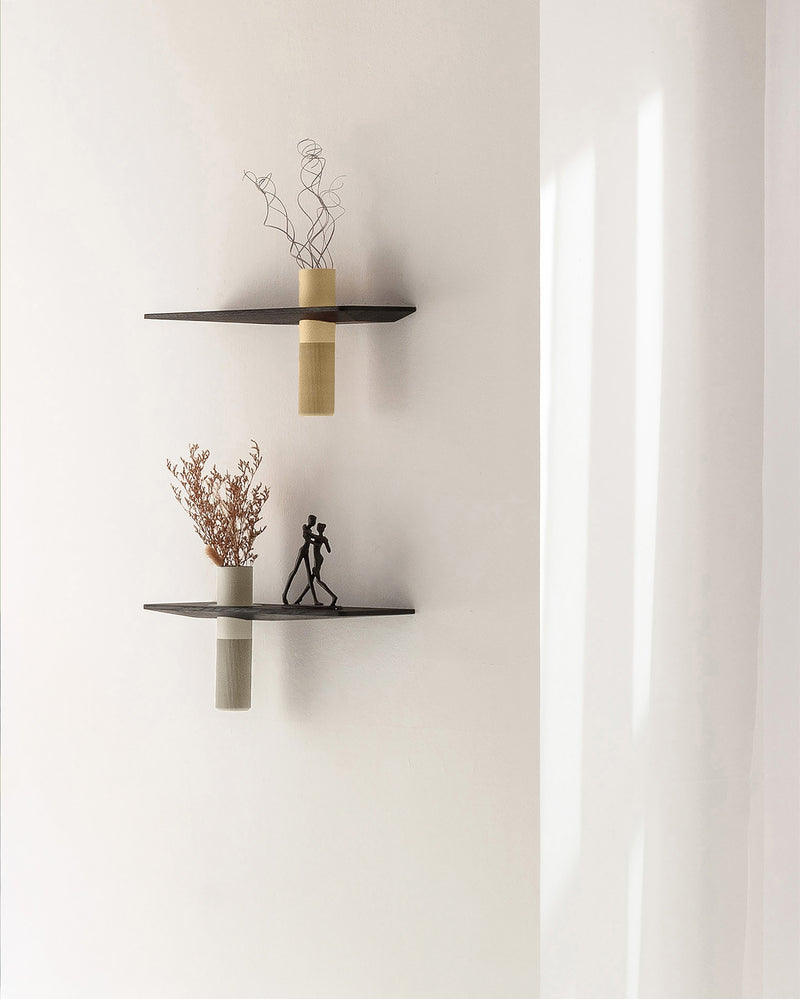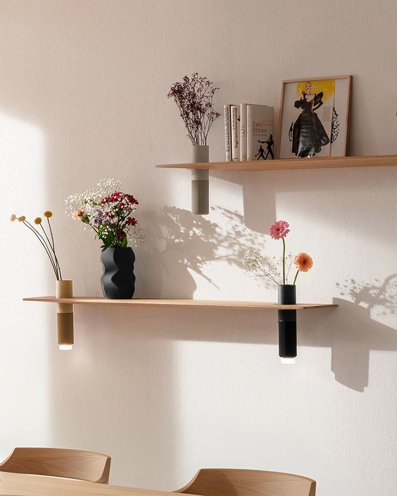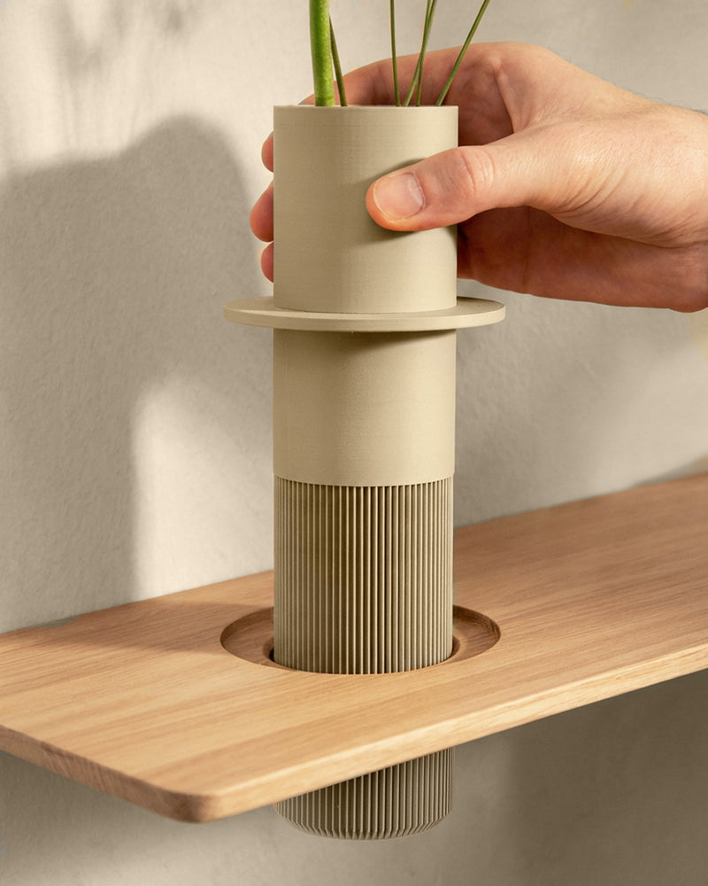 Discover the world's first shelving system with an integrated vase for safe and unique interior greenery.