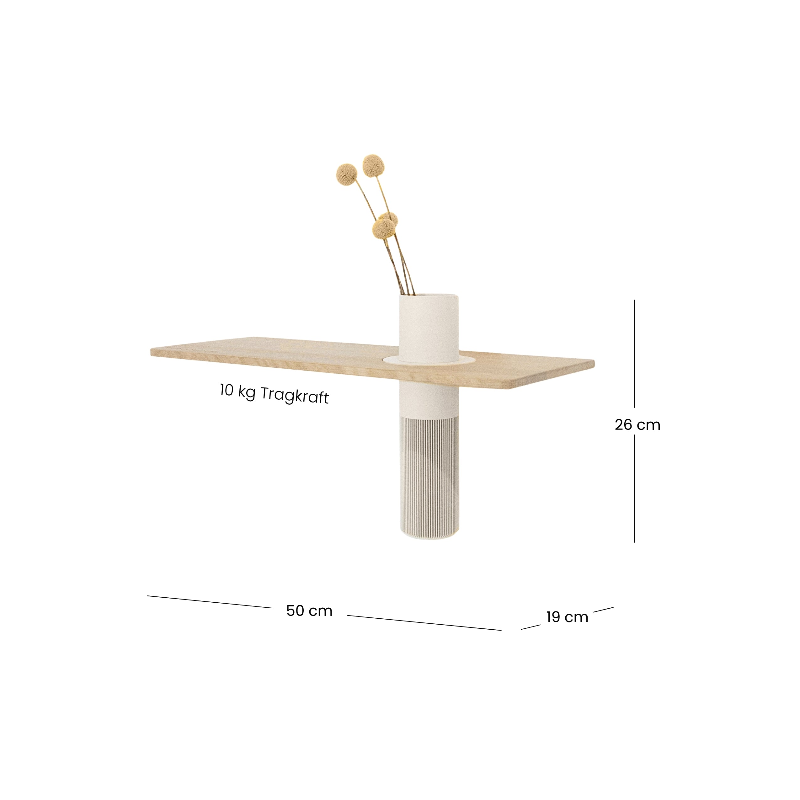 The delicate shelf made of solid oak wood appears particularly light and floating thanks to its all-round bevel. We achieved this bevel on all sides thanks to state-of-the-art CNC technology.