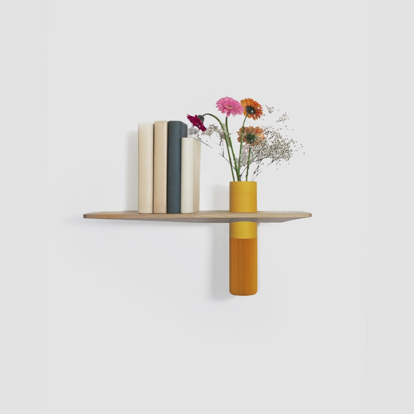 Das Vaseboard basiert auf einem modularen Aufbau. Regalbrett und Vasenmodule lassen sich beliebig kombinieren – für individuelle Lösungen im Wohnzimmer, der Küche oder im Büro.