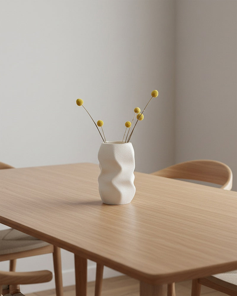 Gefertigt aus nachhaltigem Biokunststoff mit hochwertigem Glaseinsatz, vereinen sie Ästhetik und Alltagstauglichkeit. Ob saisonale Bouquets oder spontane Blumen vom Markt – diese Vase bringt sie alle groß raus.